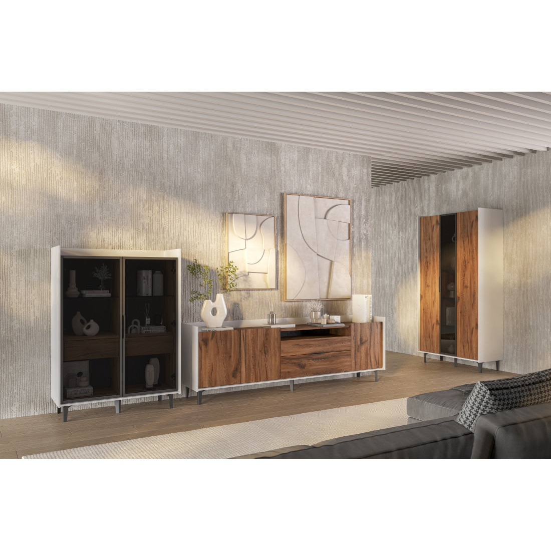 Гостиная Модена Белая/Дуб Элисон