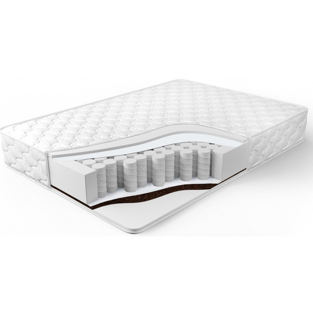 Наполнение: независимый блок TFK, высота блока 140 мм, ортопена 15 мм с двух сторон, кокосовая плита 10 мм с 1-ой стороны, износостойкий спанбонд с 2-х сторон, усиление по периметру - короб из ортопены.