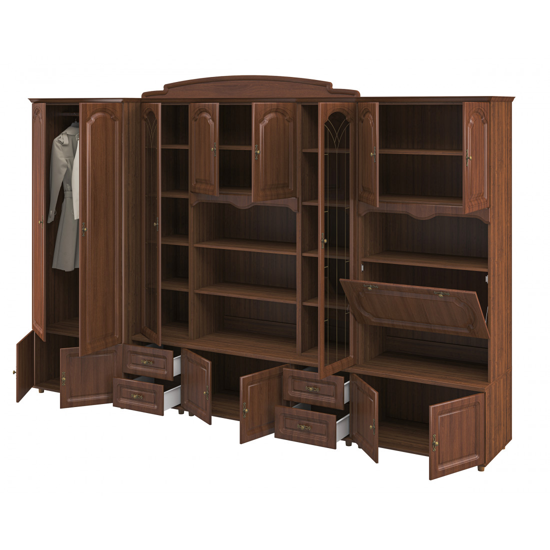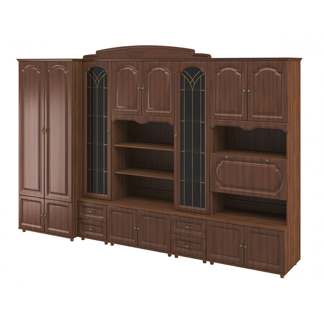 Стенка для гостиной Романтика ВК-09.1, цветовое исполнение орех структурный.